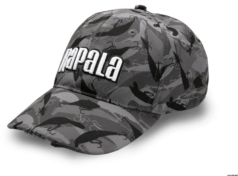 Кепка с фонарём (RLEDH)-бейсболка финской компании "RAPALA" с вышитым логотипом компании и изображениями воблеров. Особенностью данной кепки есть наличие пяти встроенных светодиодов в козырек, что будет полезно при рыбалке в темное время суток. Кепка с фонарём Led -освободит ваши руки во время ночной рыбалки. Три светодиодных лампочки выдают свет на 48 lum., и работает около 48 часов без смены батарейки.
