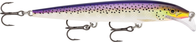 Scatter Rap Minnow представляет собой классический воблер типа Minnow размером 110 мм, изготовленный из бальсы. Приманка является плавающей, рабочая глубина у данной приманки лежит в диапазоне 1,8-2,4 м. Такой глубине погружения воблер обязан лопасти выгнутой во внутрь. На рывковой проводке лопасть заставляет приманку рыскать из стороны в сторону. На равномерной проводке приманка напоминает игру классического кренка. Scatter Rap Minnow неплохо держит течение и может применяться при ловле жереха. Щука, крупный окунь и судак одинаково хорошо одобряют данную приманку. Качественные тройники, которых на теле Scatter Rap Minnow три штуки, не оставляют шансов рыбе на сход.